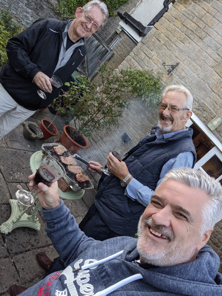 Nick and Angie invited us to their place for a pre-dinner drink where we met Mandy’s other brother Hugo and his partner Lizzie. Rendel was a little tired after the trip and didn’t join us. Their house is just ten minutes away, but over the border in Somerset. We had a few champagnes and laughs before heading home where Rendel had the barbecue going. The steaks were great and after dinner we finished the day with a couple of scotches.