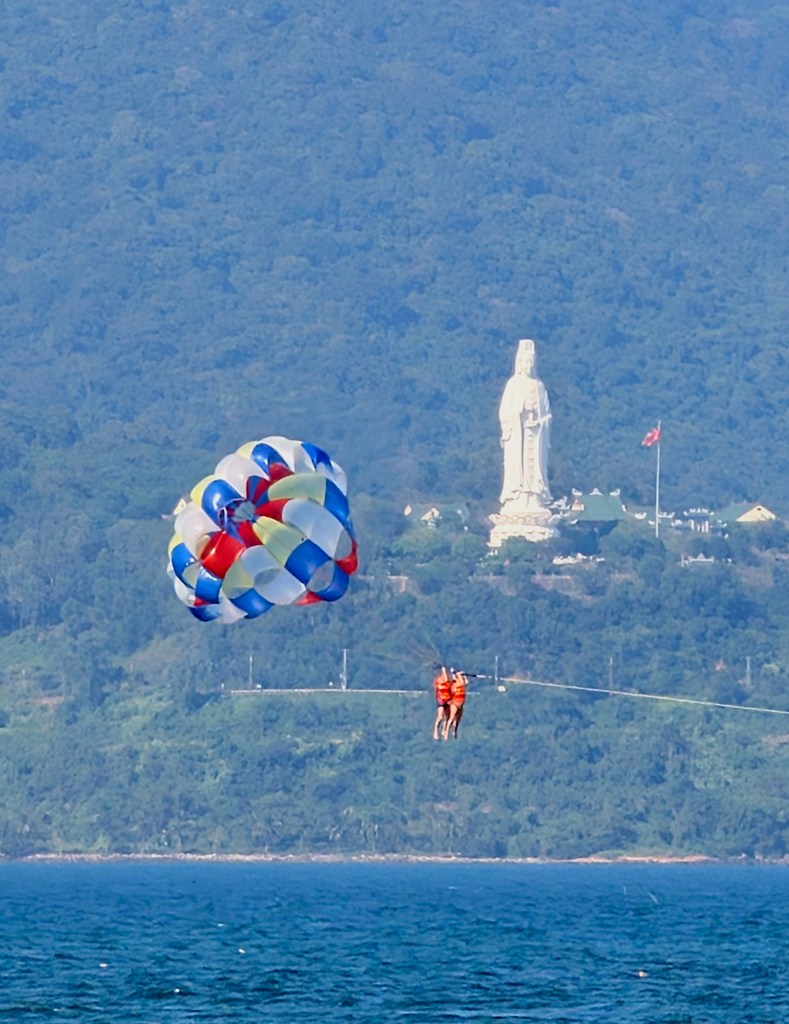We took a Grab to Chùa Linh Ứng Pagoda which features a Buddhist temple and gigantic Lady Buddha statue. There was lots of statues and temples in a nice garden setting. It was quite hot walking around so we decided to back to the beach area and cool off with a drink.