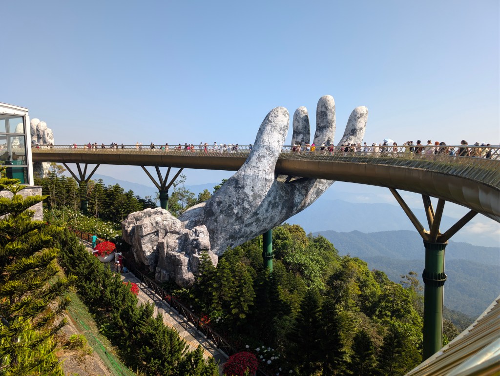 The cable car ride was indeed lovely. We were lucky to have a clear day and the views were spectacular. First stop was the Golden Bridge. This has become iconic with Vietnamese tourism. Its a 150m bridge “supported” by two enormous hands. There was already lots of people on the bridge and was difficult to take clear photos. It was very impressive nonetheless.