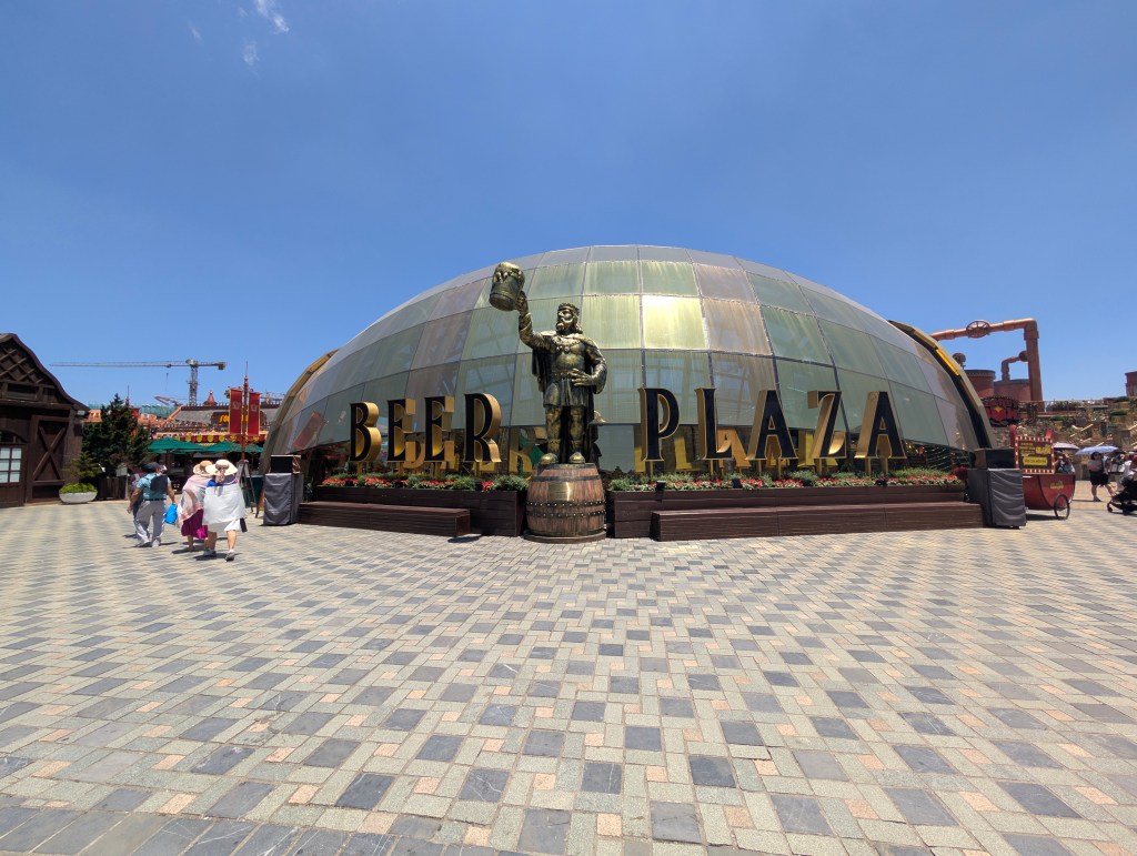 We caught another short Cable Car to the main village. This was much bigger with the historical French Village with restaurants, shows and amusement rides. Anthony and I went on the “self drive” rollercoaster. It was good fun, although quite a short ride. We walked around the area exploring the structures. When we found the Beer Plaza we cashed in our vouchers for two glasses of their beer brewed on the premise. We had lunch a fried chicken restaurant, more to rest our feet if nothing else. After lunch we noticed we were on time to see the “After Glow” cabaret show. It was entertaining but seemed out of place and a bit weird in such a family oriented attraction.