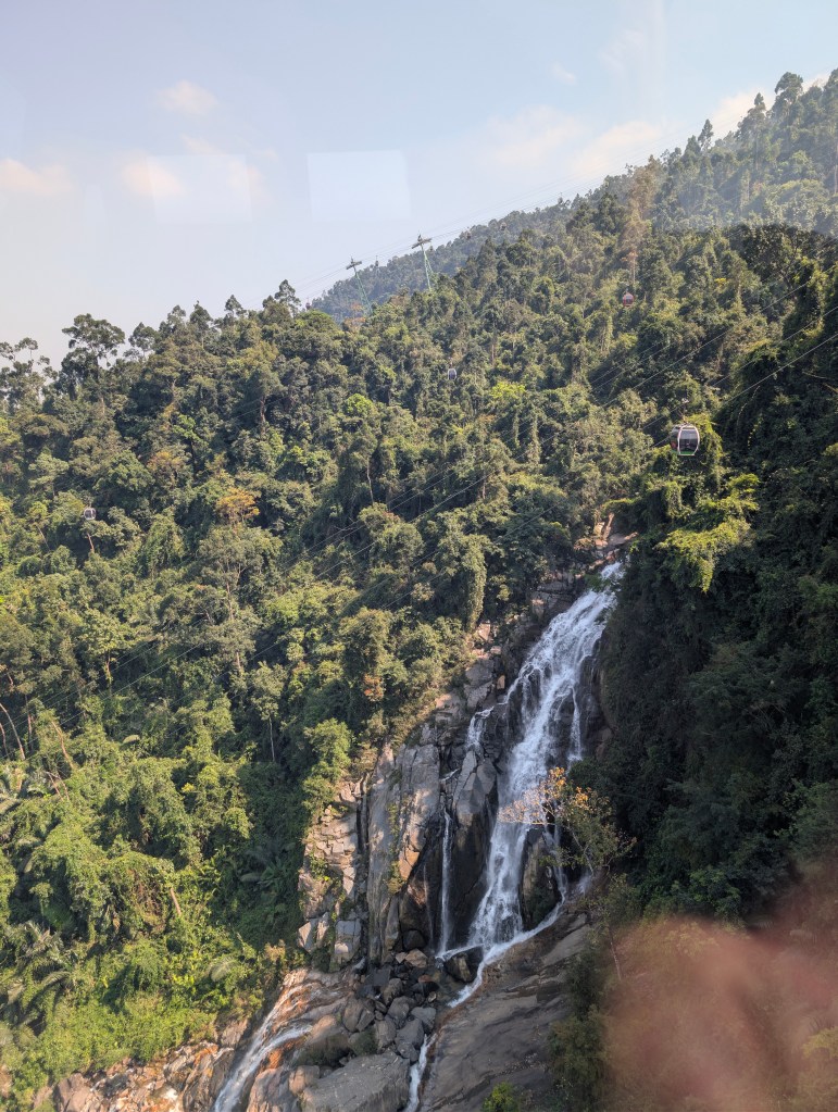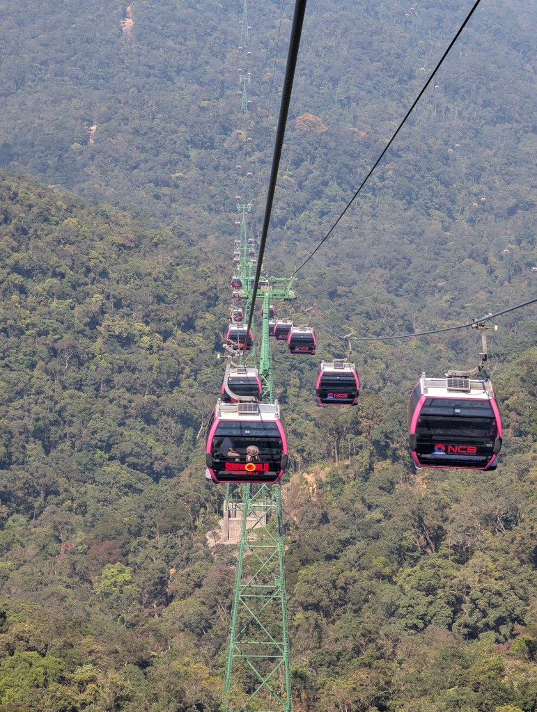We organised a Grab driver the previous night to pick us up from the hotel, wait for us and drive us back. We had read its better to arrive early to try to avoid the crowds. He arrived at 7am and were made to the Ba Na Hills, arriving at the carpark at 8am. There was a small bus ride to the “Base” station where we purchased tickets. (1M VND each).