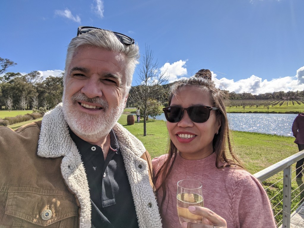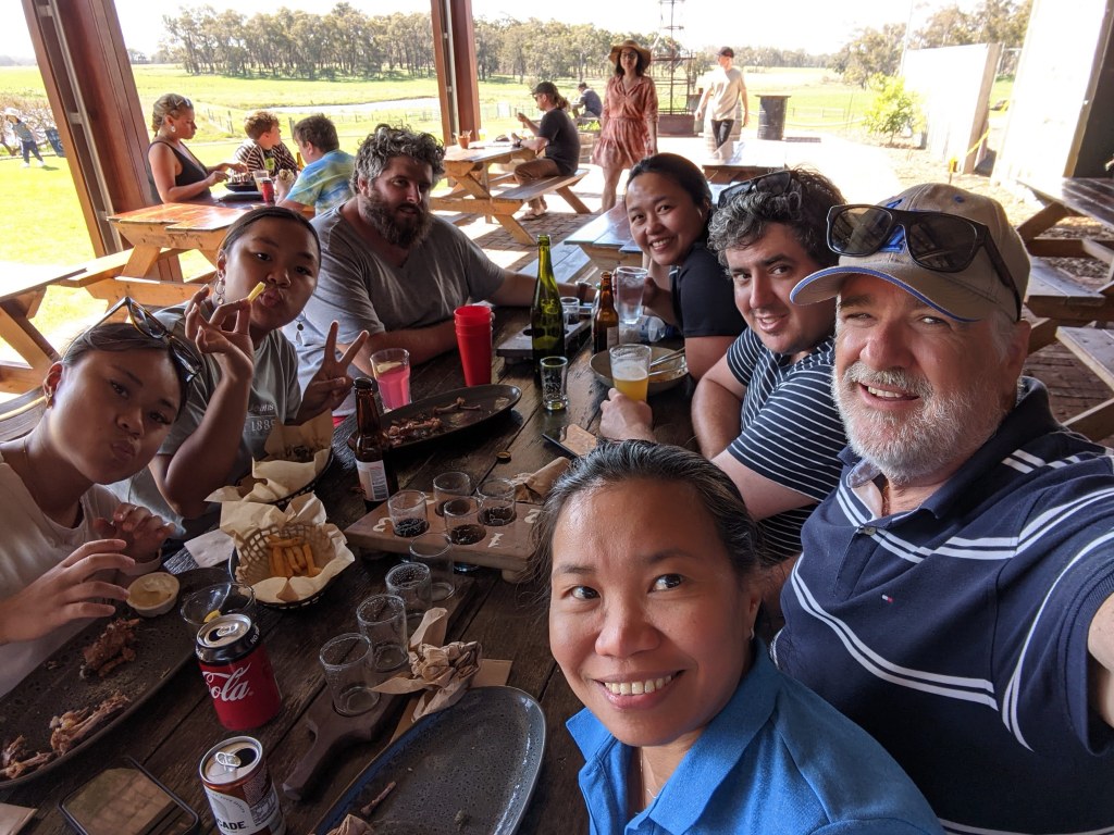 I had organised lunch at Black Brewing Co to celebrate Jane’s (upcoming) birthday. Steve drove the 50 minute drive up the Bussell highway and Caves road to the spectacular grounds of the Brewery. They also distilled Gins there and Jane tried their Blueberry and Sage gin drink. I settled for their Lager.