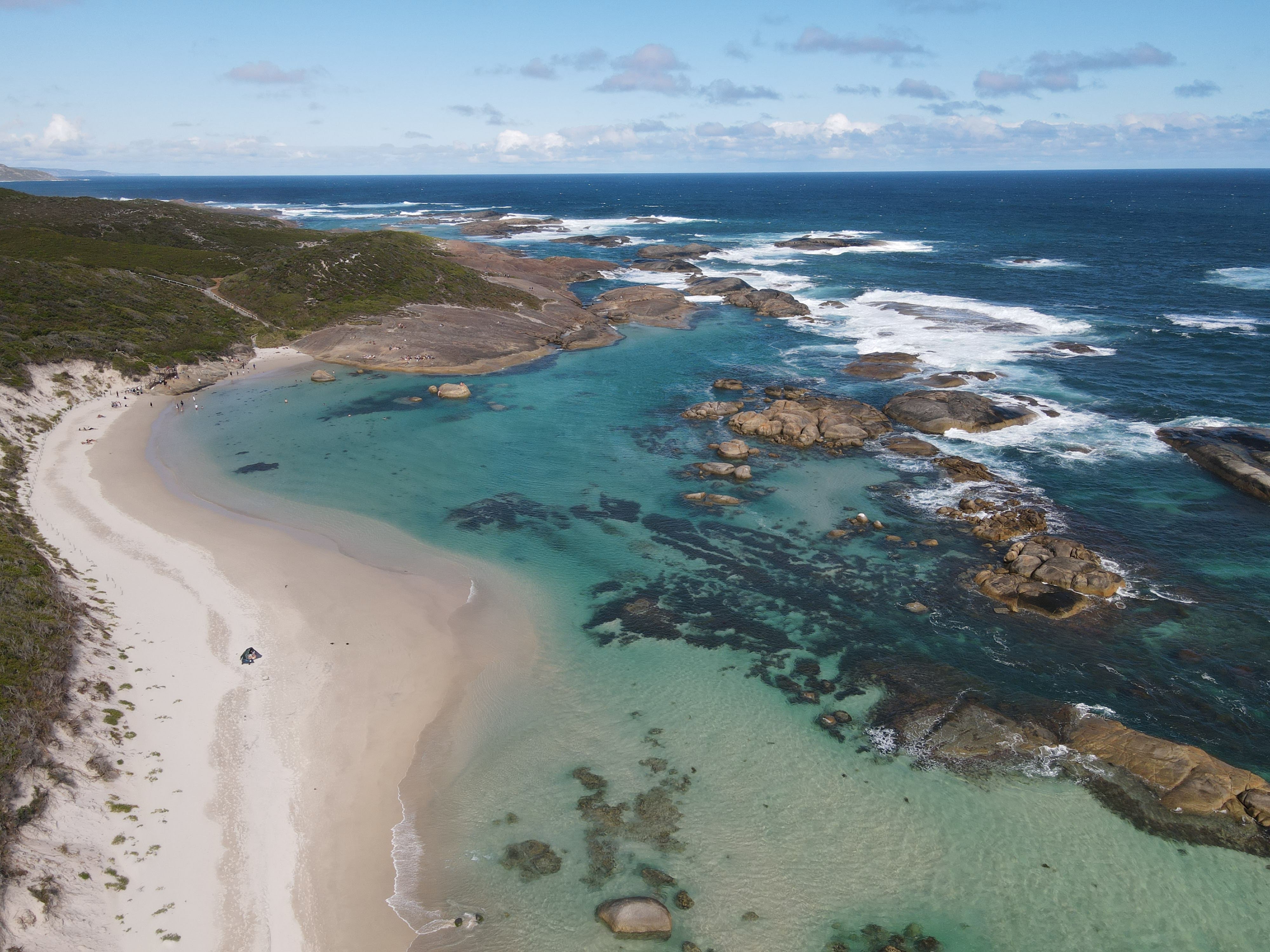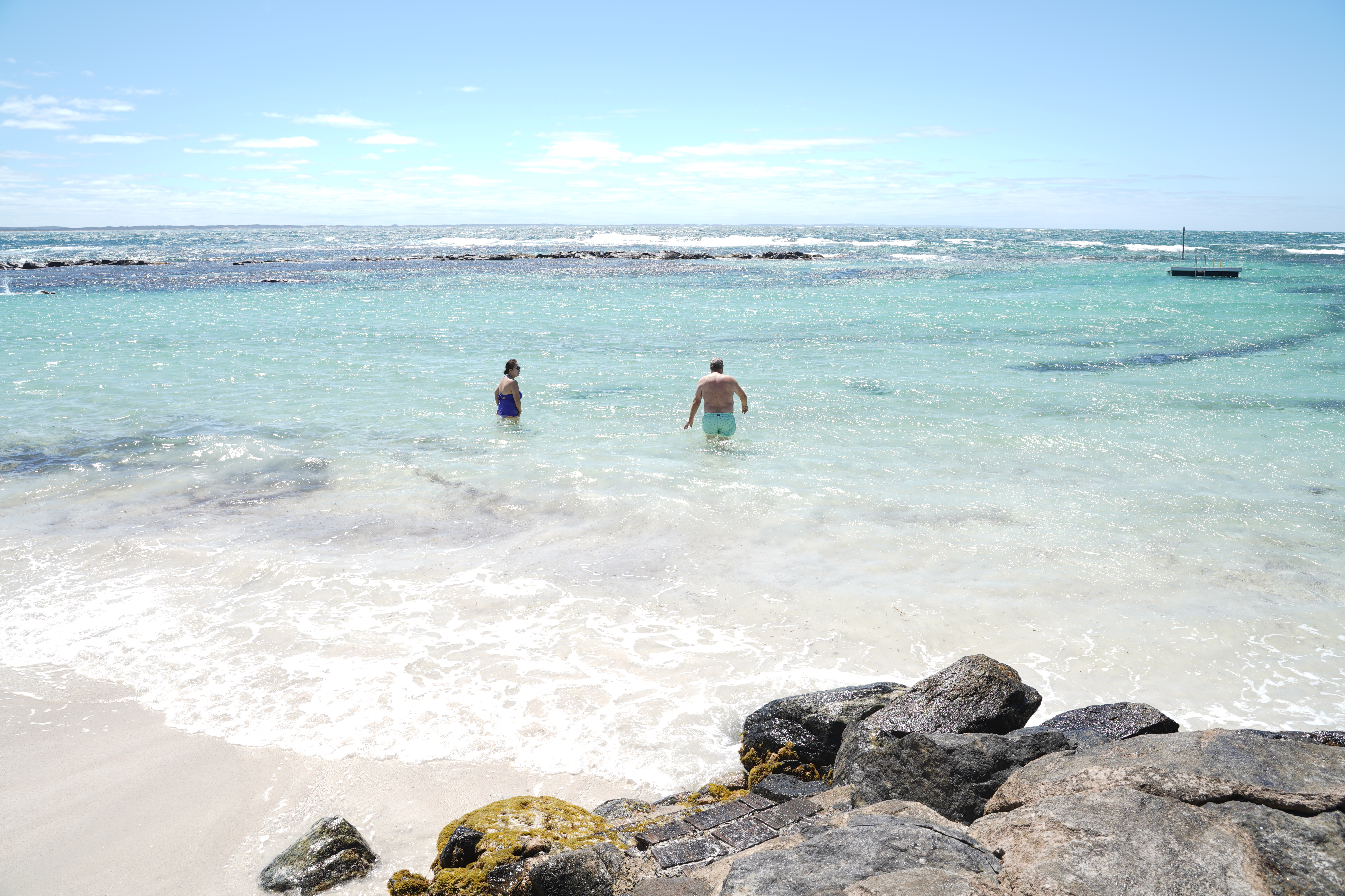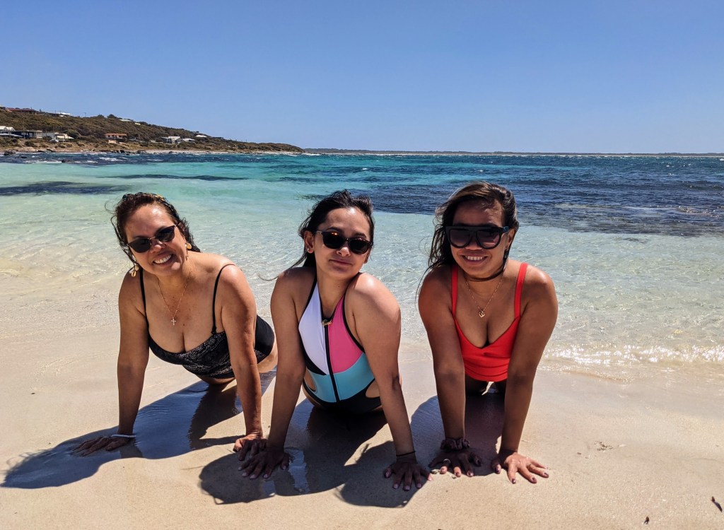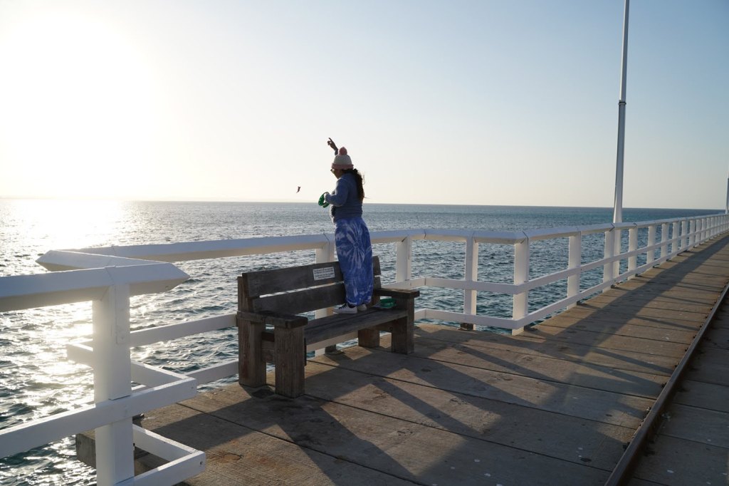 We then travelled to Cosy Corner, a lovely little bay with white sands and crystal clear water. The carpark was full, but surprisingly the beach wasn’t too crowded. We selected a nice spot near the rocks and quickly jumped in the water to cool down. The water was cold, but very refreshing. I flew my drone and tried to get some top-down photos of Jane. Unfortunately they didn’t turn out so well. We all had a great time in the water, until it was time to head home.