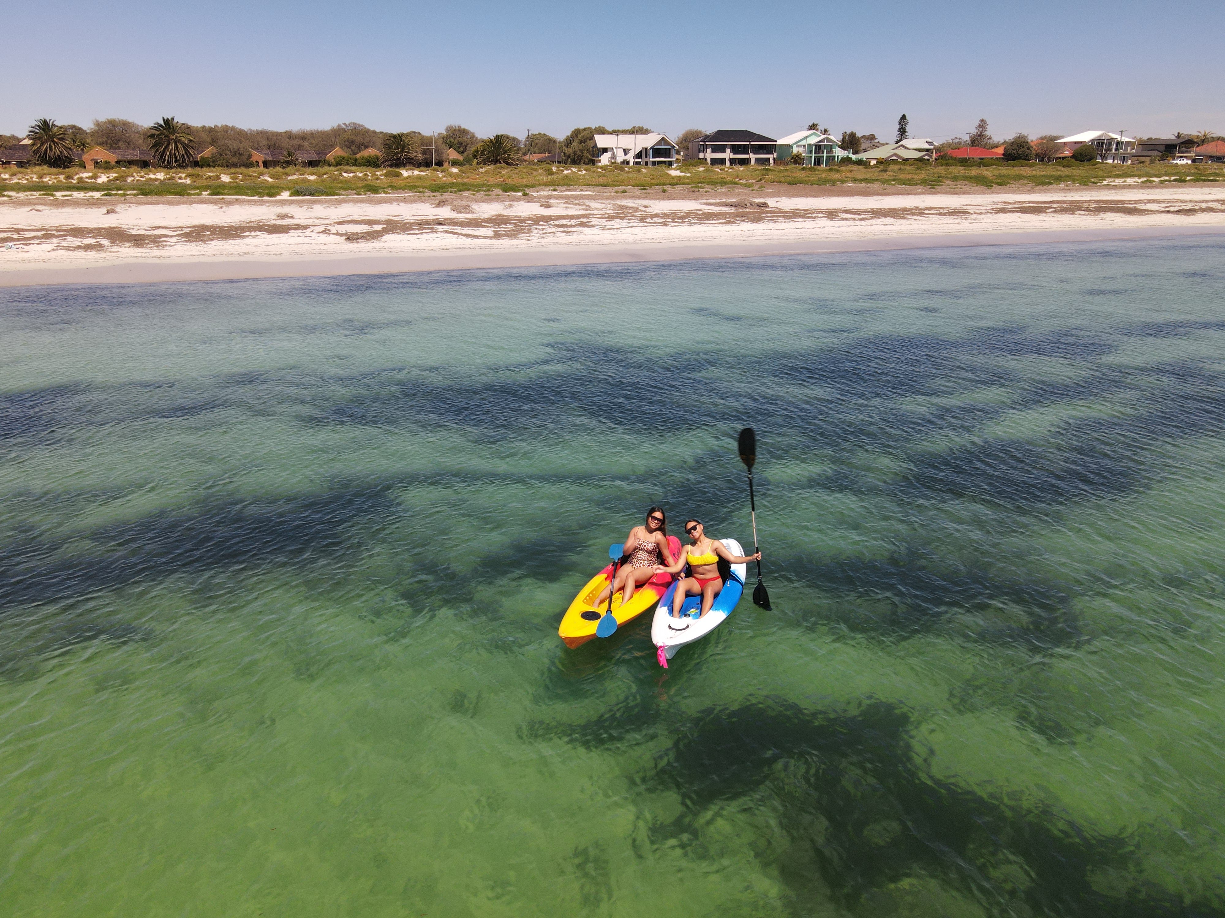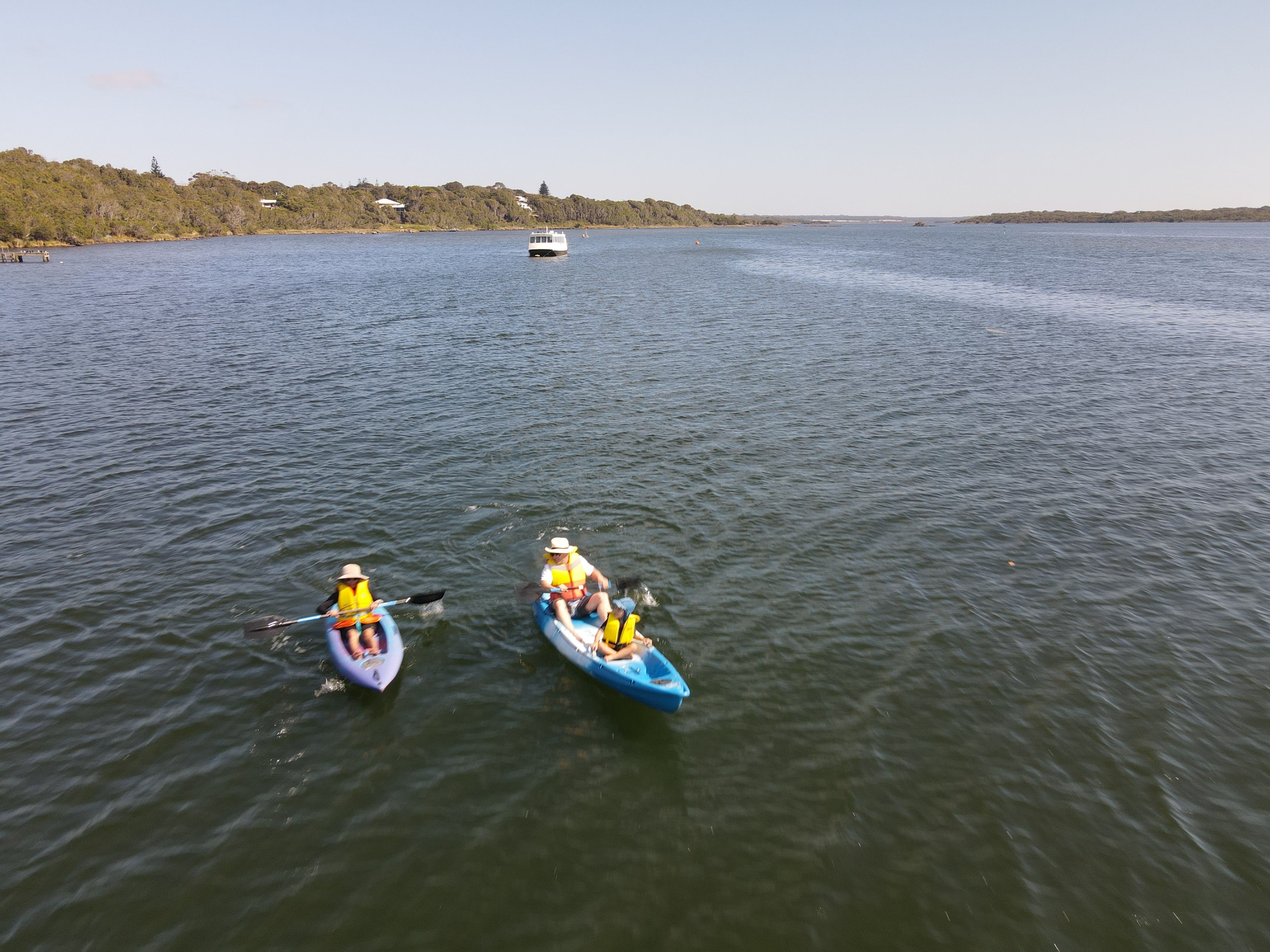 The girls were keen on taking kayaks out on the Blackwood river. After breakfast we made our way to Ellis Jetty to organise the kayaks and stand up paddle boards (SUP). When the lady asked if they could swim, Jane and Mary Ann said “no” and we’re immediately told they were ineligible to hire the kayak and SUP. Annabelle said she could swim and got the kayak. Alex and Marcus shared another kayak. I was on drone duties.
