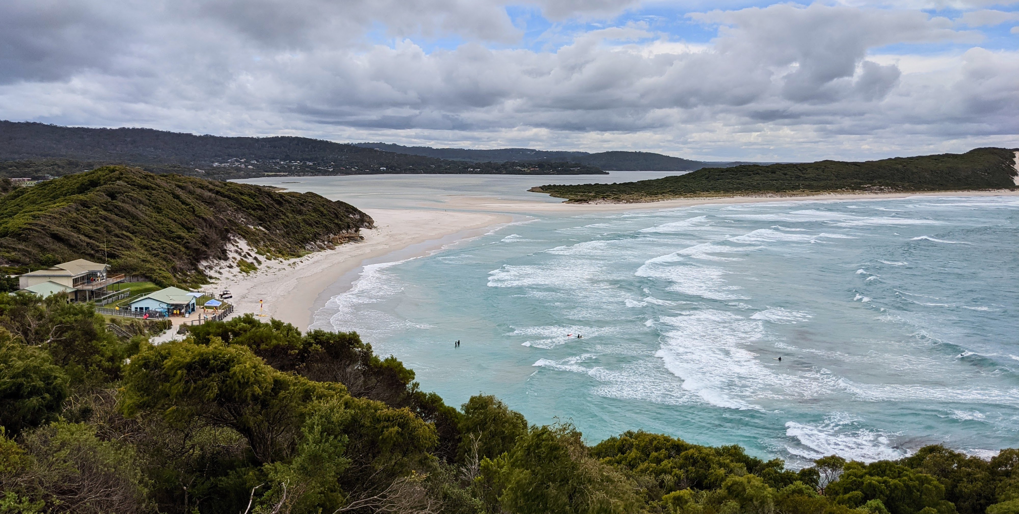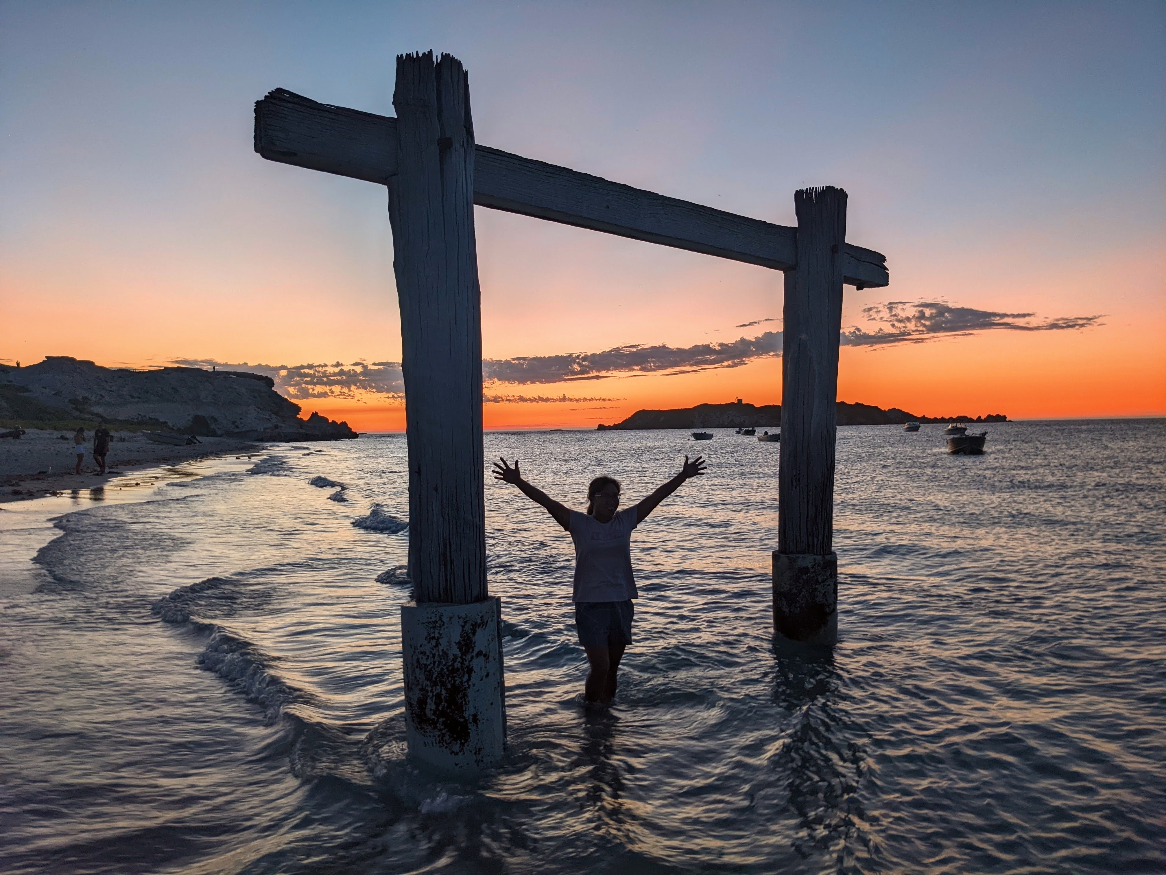 Dinner was a casual picnic by the river mouth. Steve was charged with buying the fish and chips, but left it too late to order. Instead he bought a couple of cooked chickens from IGA to share. Alex tried his hand at fishing. He caught a tiny bream (I think it was) but it was too small to keep so he kissed it an threw it back promising to come back next year and catch it when it’s grown up.
